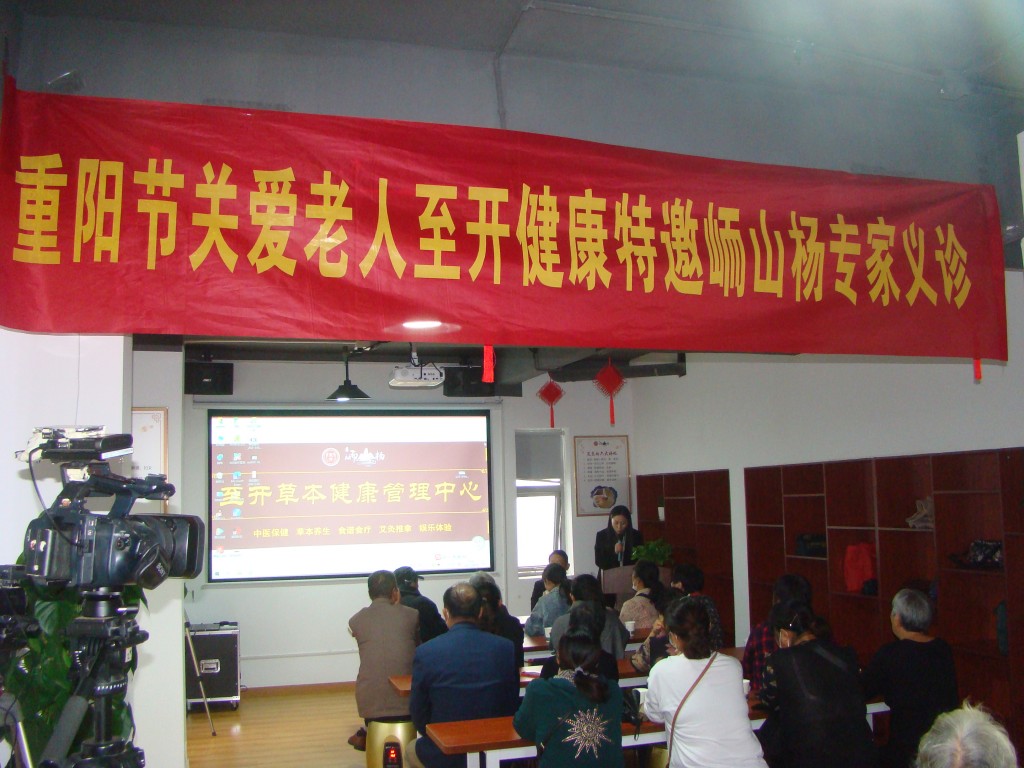 2021年10月14日,是中華民族傳統的重陽節、敬老節。這一天,安徽至開集團旗下至開健康管理中心,聯手合肥世紀金源物業,邀請峏山楊第24代傳人、著名中醫楊曉生,給社區內的中老年人做保健養生公益講座,并現場開展義診。